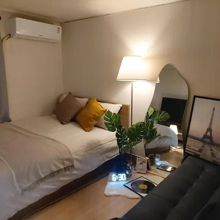 Améliorez votre séjour avec l'appartement doté d'une cuisine équipée équipée d'un réfrigérateur pour votre confort. L'arrêt de bus Korea Muyeok Center est dans une zone de 200 mètres.